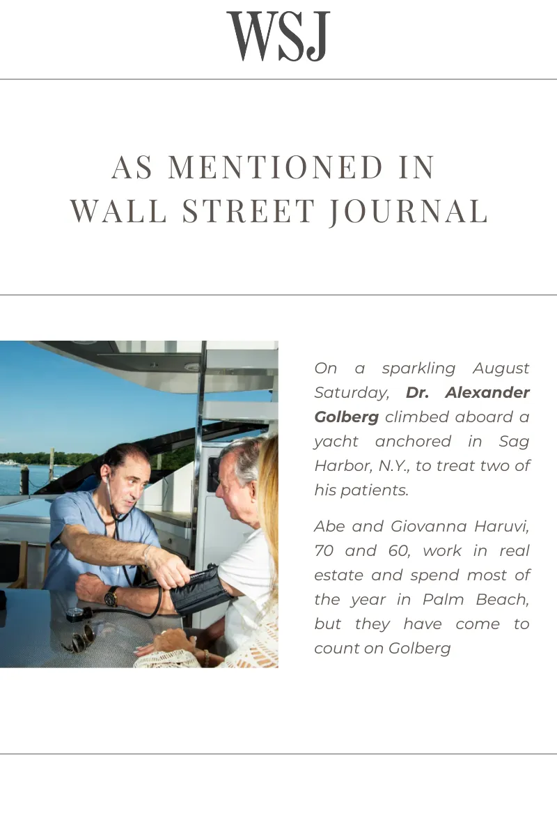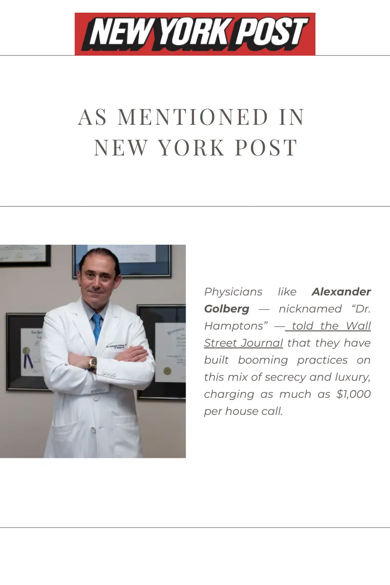 Dr. Golberg, MD. DO has earned features and mentions in the Wall Street Journal, New York Post and other remarkable publications.