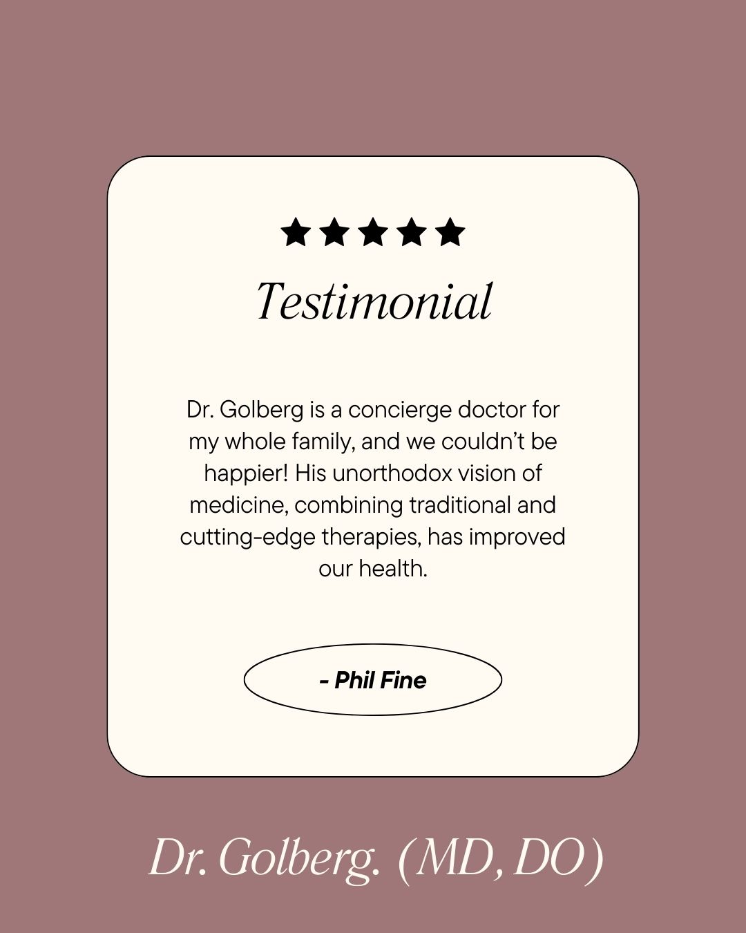 Board certified physician Dr. Golberg, MD. DO. brings passion, expertise and a proven track record of success into every hyper personalized health plan.
