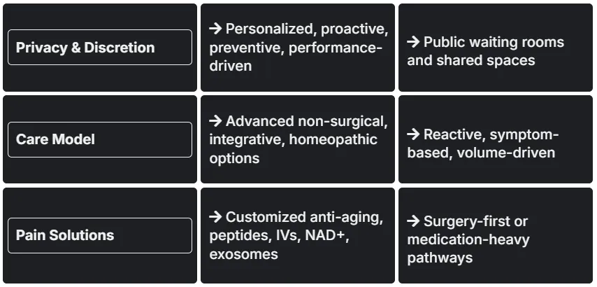 From 20% savings to concierge-level access, members get a level of attention, convenience, and comfort that traditional medical offices simply can’t match.