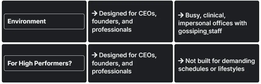 High luxury, judgment-free, confidential space where you can discuss anything.